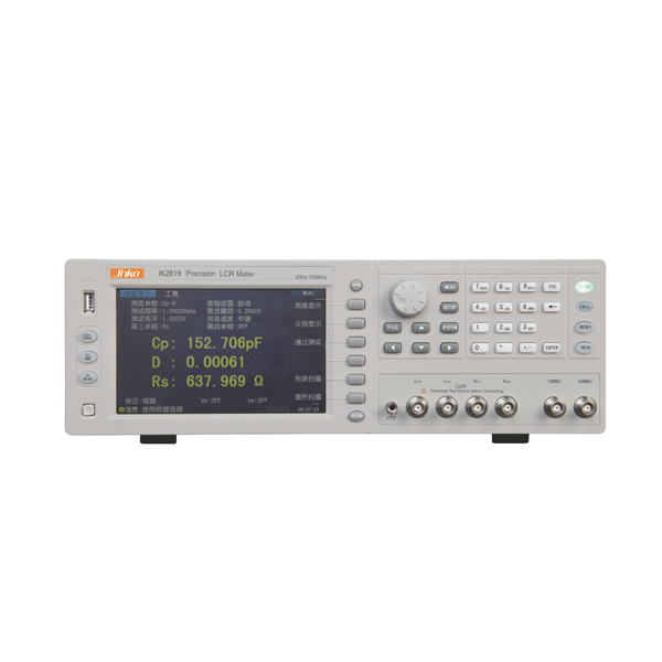 JK2819高精密數(shù)字電橋是一種用于各種電子元器件檢驗(yàn)的多功能元件參數(shù)測試儀。采用7英寸800x480彩色TFT LCD顯示器。